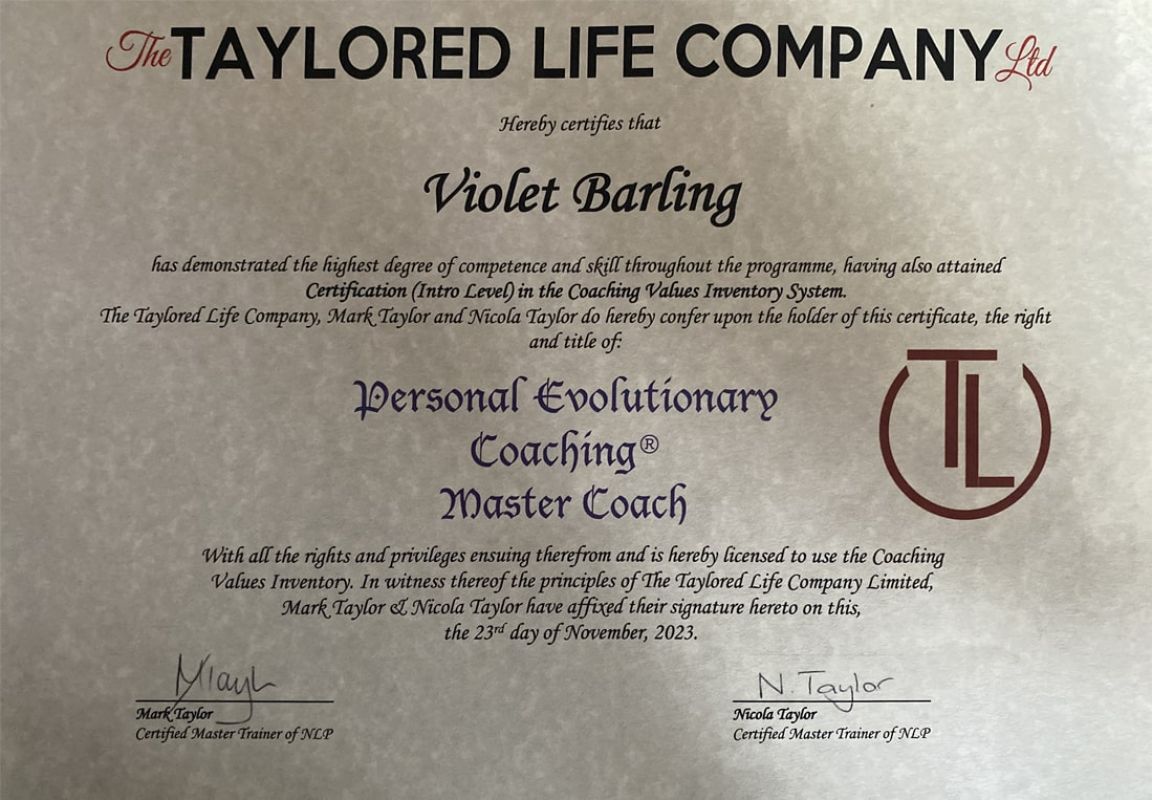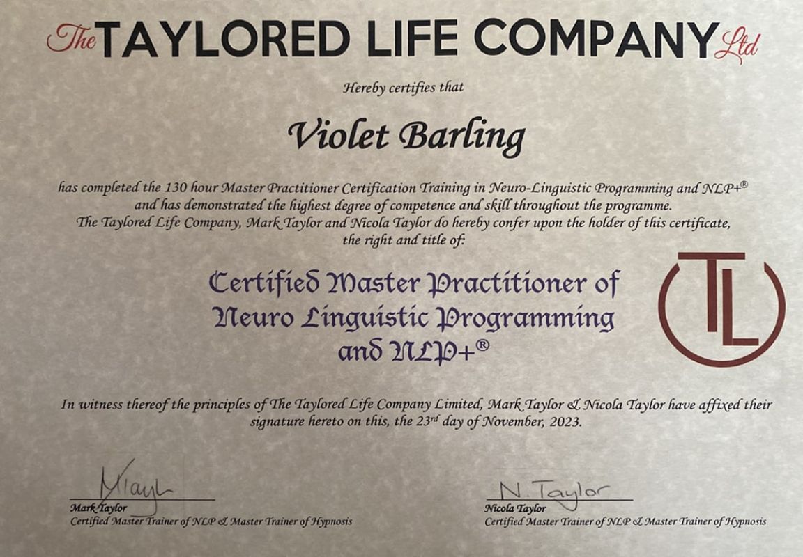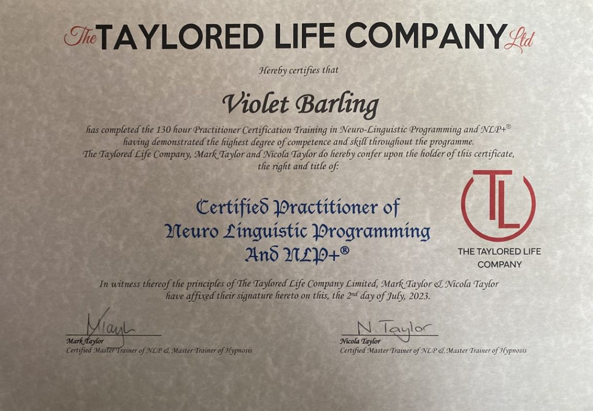 So I trained as a hypnotherapist with Innervisions School of Hypnotherapy. During this we touched upon Neuro Linguistic Programming - the way and why we do the things we do! A spark inside me was ignited, I investigated who to train with in this specific area, I found The Taylored Life Company; their ethos was fantastic and resonated with me. I graduated in November 2023 with all the skills required.